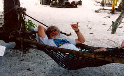 Submitted by Gunter Hofmann, January 2000: Moment of Bliss on Palmerston Island The first time we began using the phrase moments of bliss was in Palmerston, part of the Cook Islands chain in July of 1998. We, as part of the crew, were dinghied to the shore of the tiny atoll, leaving captain John Neal and his first mate Amanda on board the Mahina Tiara in a difficult anchorage off the pass near the reefs. We had survived 2 1/2 days of 35 knot winds, gusting to 43, with the main and head sail triple-reefed, steering through black rainy squalls by compass only. You can find the story of that trip-and others-at Mahina.com. Gliding over the reef into the sheltered lagoon was a good omen for entering a friendly place. Bill Masters, 5th generation descendent of the founder of the Palmerston community, led us to his place and put us down in his living room which was also his office and the family bedroom. "Sit down, lie down, make yourself comfortable," he said. Surrounding the house was an odd assembly of sheds and huts full of mysterious machinery and bits and pieces of ships that had been wrecked on the reef. A basic West Marine supply depot--just no catalog and of course, no clerks. And then, there it was, a hammock between a group of coconut palms surrounded by flower beds. I felt that I was coming closer to my dream of what a landfall on a tropical atoll should be about. Bill gave me pillows and I climbed into the hammock. And then, transcendence began. I could feel my soul coming to rest, I could feel the friendliness and good will in the air around me and I could smell the fragrance of the flowers and sense the beauty of in the bluest sky between the crowns of the palms with a subdued murmur of the breakers on the reef in the distance. And then it came to me, a moment of bliss, where the world outside and inside is in complete harmony for a fleeting time.