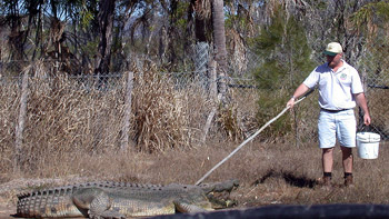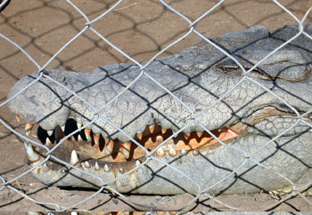 If you do get attacked by a big croc, just shove your arm down its throat, he told us; the croc has a flap way back in its throat that has to stay closed in order for it to swallow.