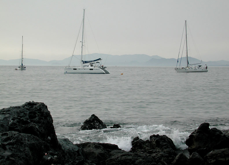 Quest, Finally and Pacific Bliss in Isla Grande Anchorage