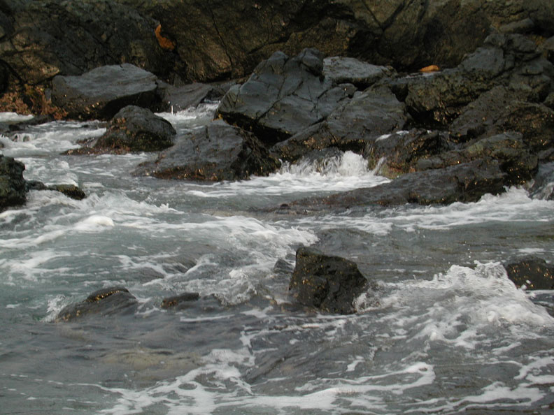 Rushing Water over Black Rocks at Isla Grande